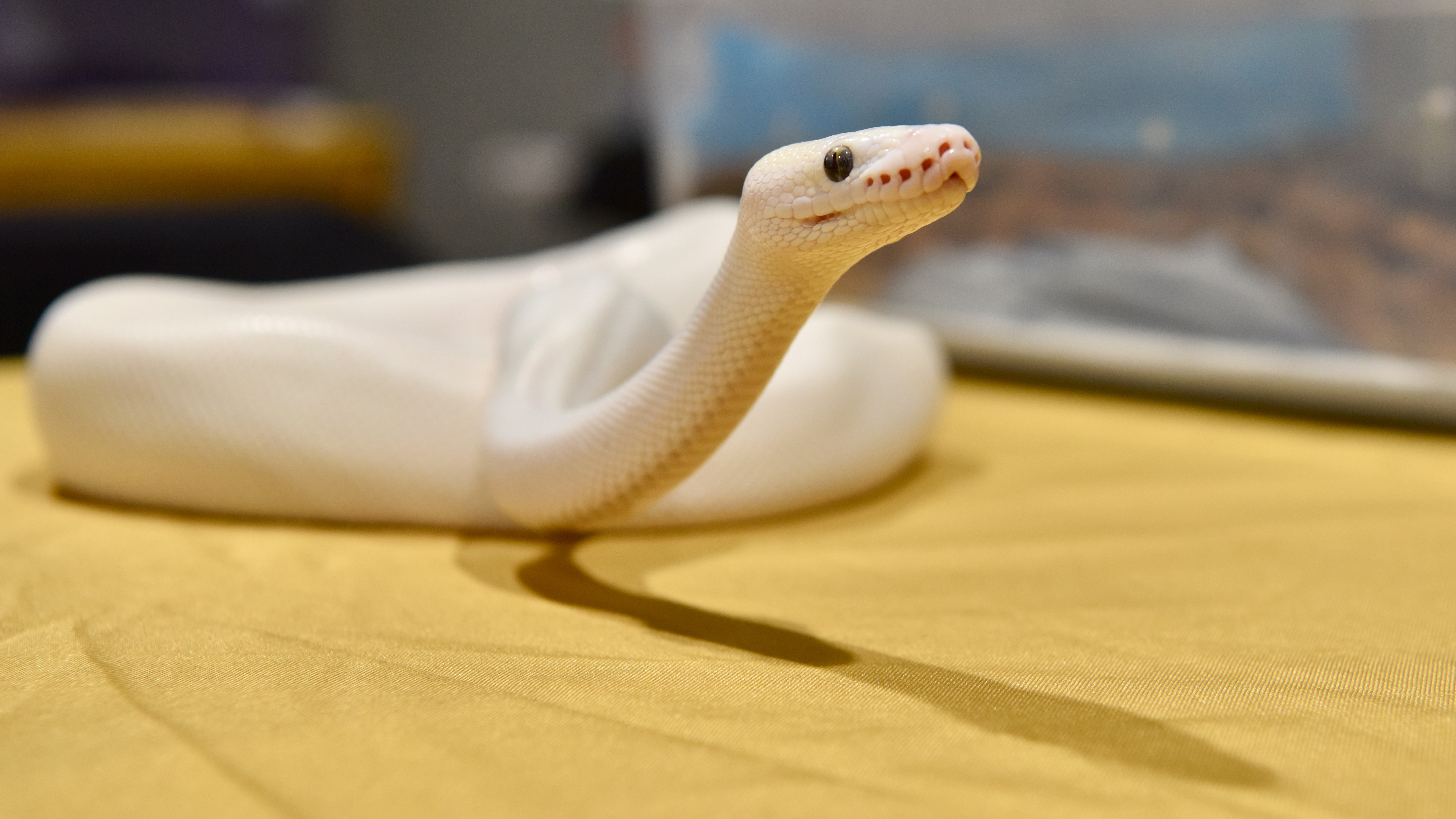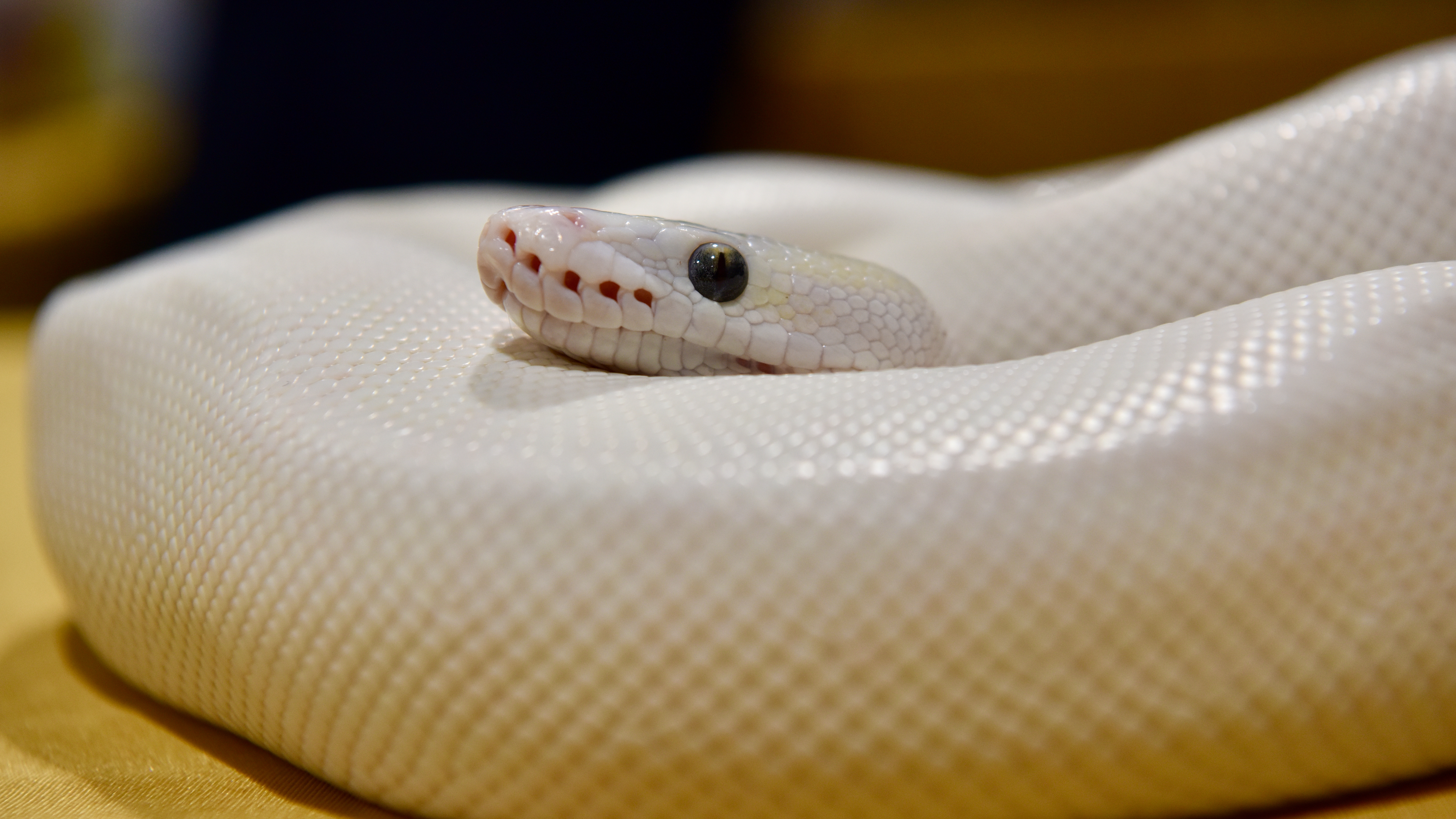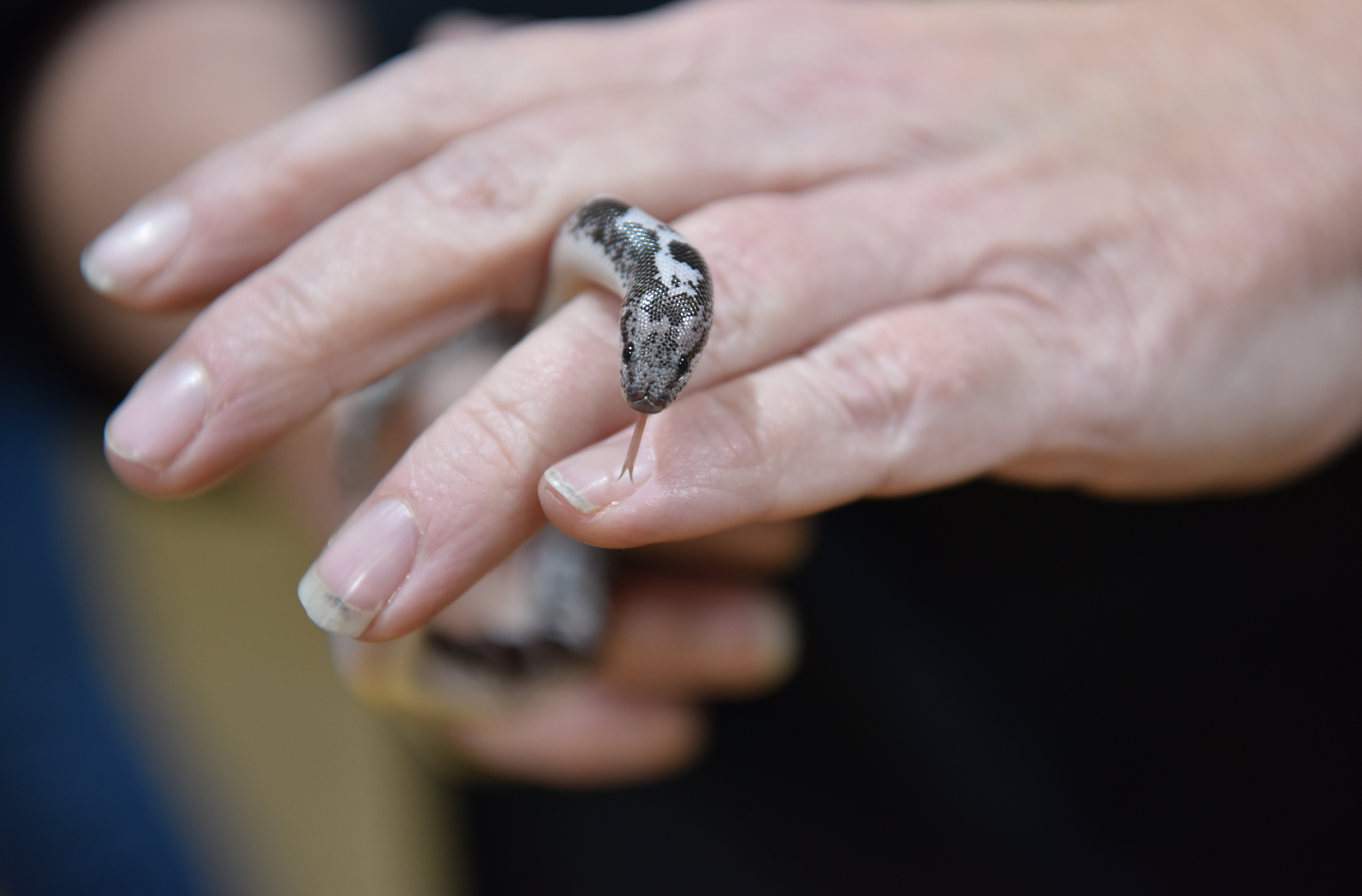 Blue Eyed Leucistic Ball Python at Rest Head Rest Shiny Head Curiosity Piqued Raised and Wondering Kenyan Sand Boa Wondering Where to Burrow Kenyan Sand Boa Tail to Head Tongue Fully Out Burrowing Through Fingers Hovering Bright Against the Dark Ballmore Pythons and Solstice RoyalsHagerstown Scales and Tails